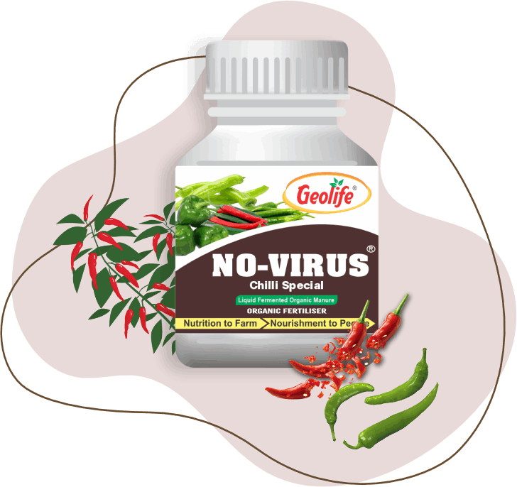 Application : Foliar application of No Virus with 5ml/L doses showed significantly results against leaf curl virus of chili.